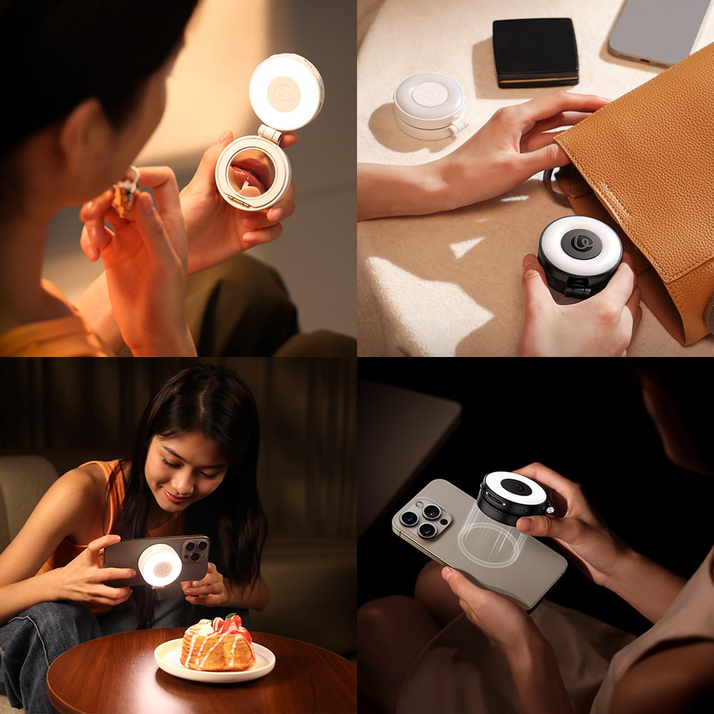 Lampa selfie do telefonu Ulanzi LM23 sprawdzi się wszędzie tam, gdzie chcemy na szybko doświetlić swoją twarz. Magnetyczny montaż pozwala w kilka sekund przypiąć lampkę do telefonu z mocowaniem magnetycznym, a dołączony pierścień 3M ułatwia użycie także na innych modelach. Regulacja jasności oraz zmiana temperatury barwowej 2500-8500K pomagają dopasować światło do wnętrz, nagrań przy oknie i wieczornych ujęć, a wbudowane lusterko ułatwia kontrolę kadru w trakcie nagrania.