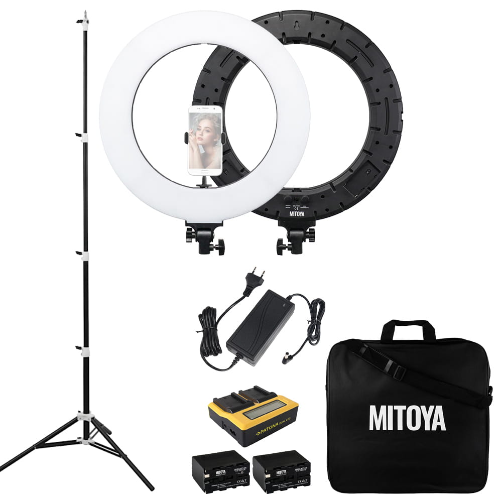 *ZESTAW* Lampa LED RING MITOYA RL480 45cm + statyw PENGUIN + dodatkowe baterie i ładowarka Patona
