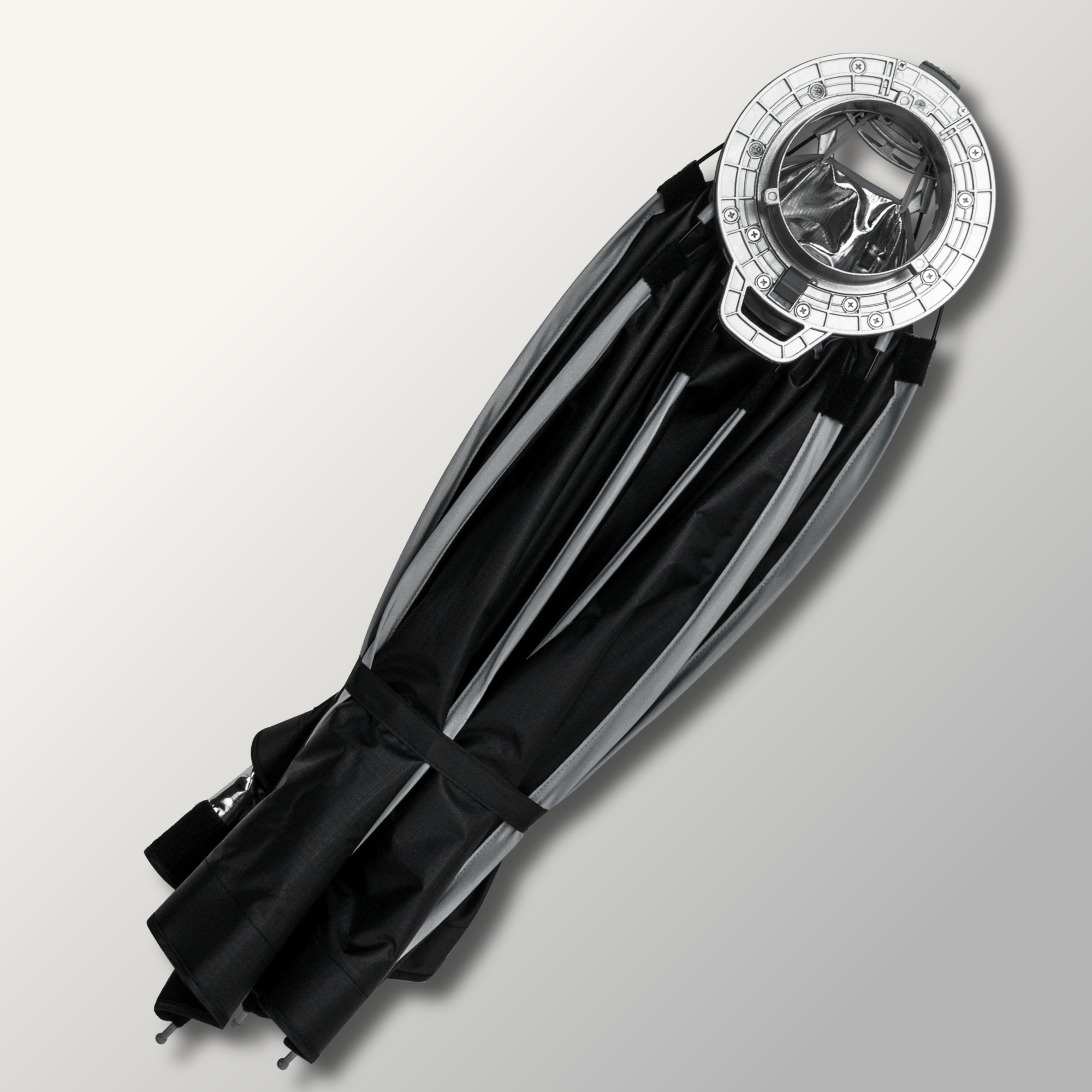 Softboxy z serii MITOYA SNAP zaprojektowano tak, aby jak najlepiej wykorzystać światło lampy. Konstrukcja nośna została poprowadzona na zewnątrz czaszy. Dzięki temu srebrne wnętrze pozostaje wolne od elementów montażowych, które mogłyby ograniczać równomierne rozchodzenie się światła.