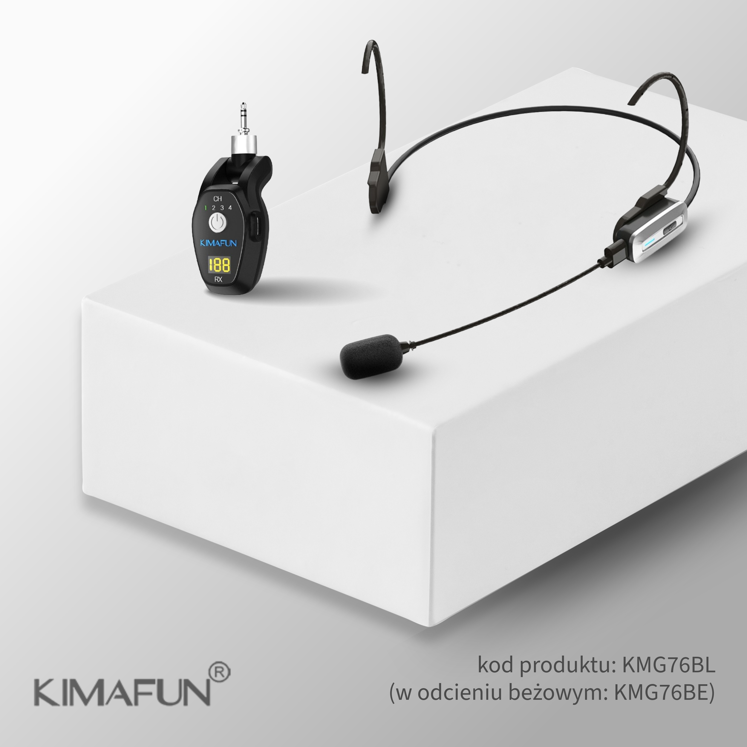 Model Kimafun KM-G76 to mikrofon nagłowny bezprzewodowy przeznaczony do wystąpień publicznych. Lekka konstrukcja sprawia, że mikrofon jest wygodny nawet podczas długich prezentacji. Stabilny pałąk utrzymuje kapsułę w odpowiedniej pozycji przy ustach, dzięki czemu głos pozostaje wyraźny i dobrze słyszalny.