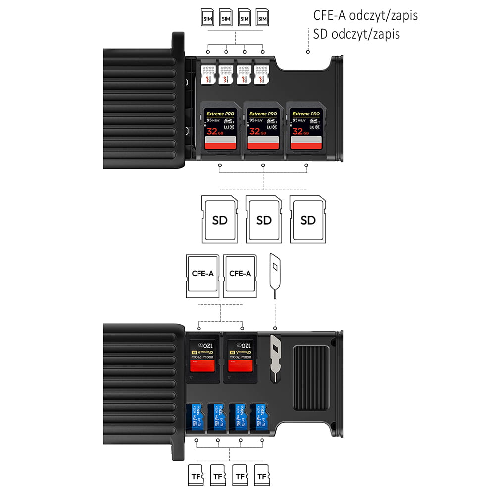 - Wielofunkcyjny organizer na karty pamięci