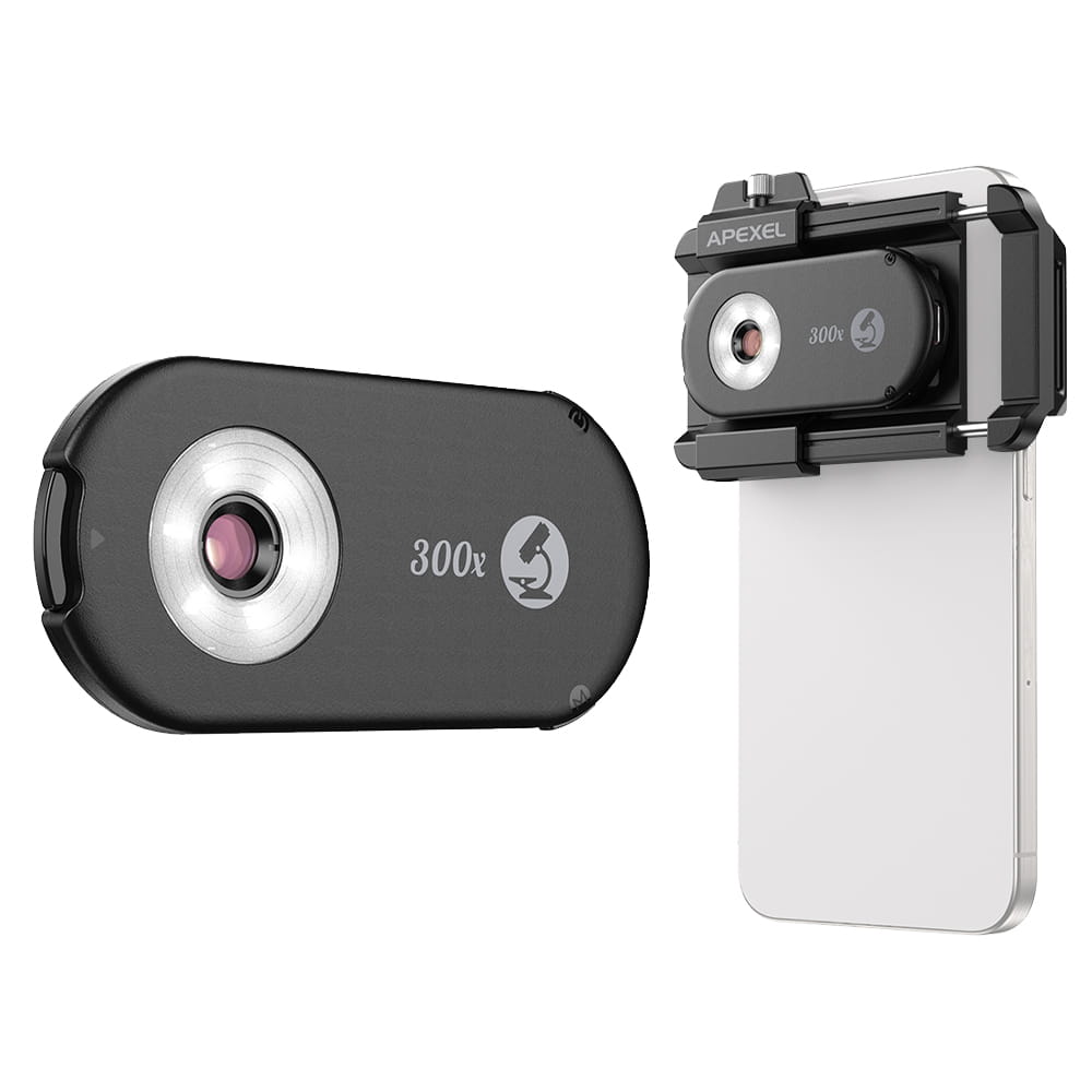 Apexel APL-MS300 to mikroskop do smartfona stworzony dla osób, które chcą wygodnie eksplorować mikroświat z wykorzystaniem telefonu. Sprawdzi się w rękach studentów, nauczycieli, badaczy, jubilerów, inżynierów oraz hobbystów, którzy potrzebują przenośnego narzędzia do obserwacji, dokumentowania i analizy próbek. Dzięki regulowanemu oświetleniu LED i UV, filtrowi CPL oraz uniwersalnemu klipsowi mikroskop można wykorzystać zarówno w edukacji, jak i do inspekcji elektroniki, kontroli biżuterii, badania roślin, owadów i materiałów, a zapisane zdjęcia i filmy łatwo archiwizować i udostępniać bezpośrednio ze smartfona.