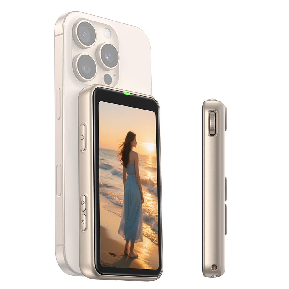 TELESIN P5-RMT-07 to kieszonkowy monitor podglądowy do smartfona zaprojektowany z myślą o twórcach wideo, fotografach mobilnych i osobach tworzących treści na social media. Urządzenie łączy się z telefonem bezprzewodowo i wyświetla podgląd z tylnej kamery w czasie rzeczywistym, dzięki czemu można wygodnie kadrować zdjęcia i nagrania bez polegania na przednim, często gorszym technicznie, aparacie. Monitor rozwiązuje typowy problem braku podglądu przy korzystaniu z głównego aparatu, zachowując jednocześnie najwyższą jakość obrazu.