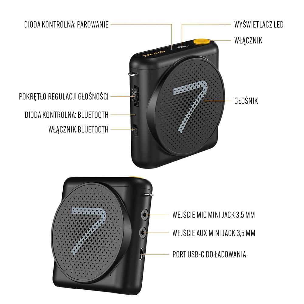 - Przenośny wzmacniacz głosu z bezprzewodowym mikrofonem nagłownym