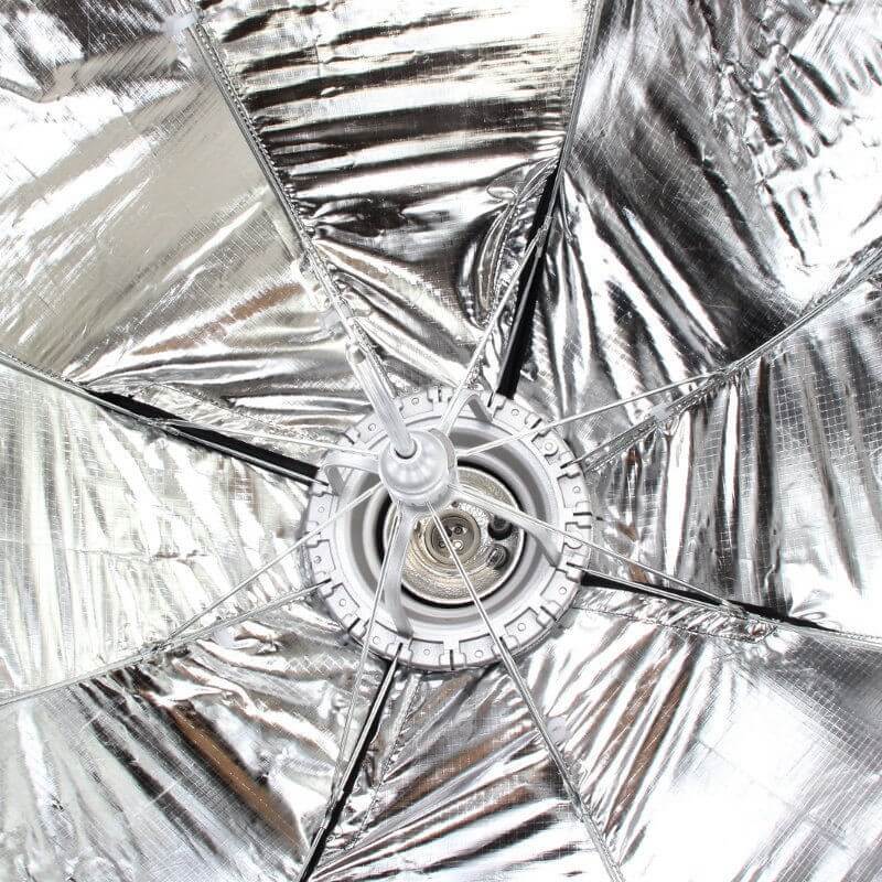Softbox studyjny MITOYA QUICK 95 cm z mocowaniem systemu Bowens. Wyposażony w zintegrowany system szybkiego montażu, który nadaje mu parasolkową konstrukcję i sprawia, że jego składanie i rozkładanie zajmuje dosłownie chwilę! Czasza softboxu jest na zewnątrz matowo czarna, zaś w środku wyłożona srebrnym materiałem, wielokrotnie odbijającym i wzmacniającym światło lampy. Wytrzymałe, aluminiowe druty gwarantują odpowiednie naprężenie materiału oraz dużą trwałość.