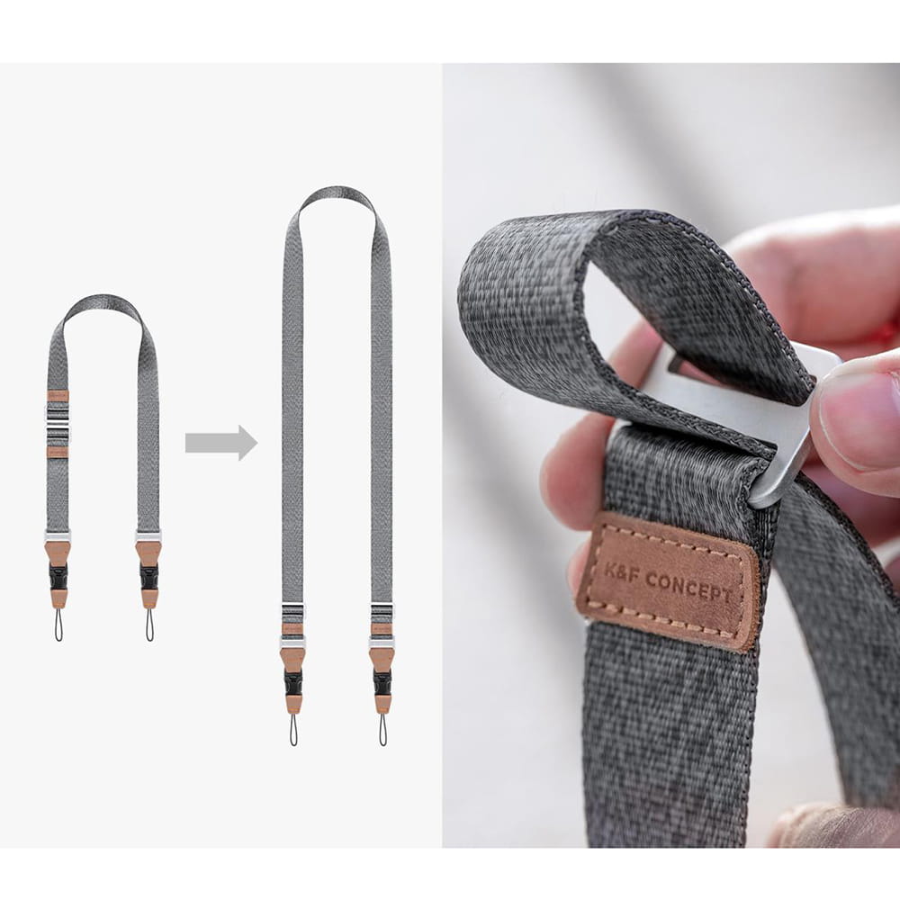 K&F Concept Alpha Strap to regulowany pasek na szyję i ramię do aparatu, zaprojektowany z myślą o fotografach i twórcach wideo pracujących z aparatami lustrzankami i bezlusterkowcami. Wykonany z wytrzymałej taśmy nylonowej przypominającej samochodowy pas bezpieczeństwa, oferuje wysoką odporność na przetarcia i zużycie. Szerokość paska wynosi 32 mm, a neutralna, szaro-czarna kolorystyka dobrze komponuje się z większością zestawów foto-wideo.