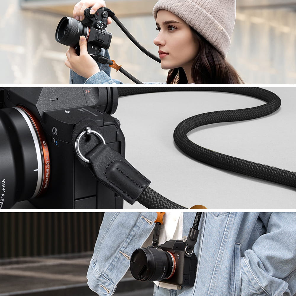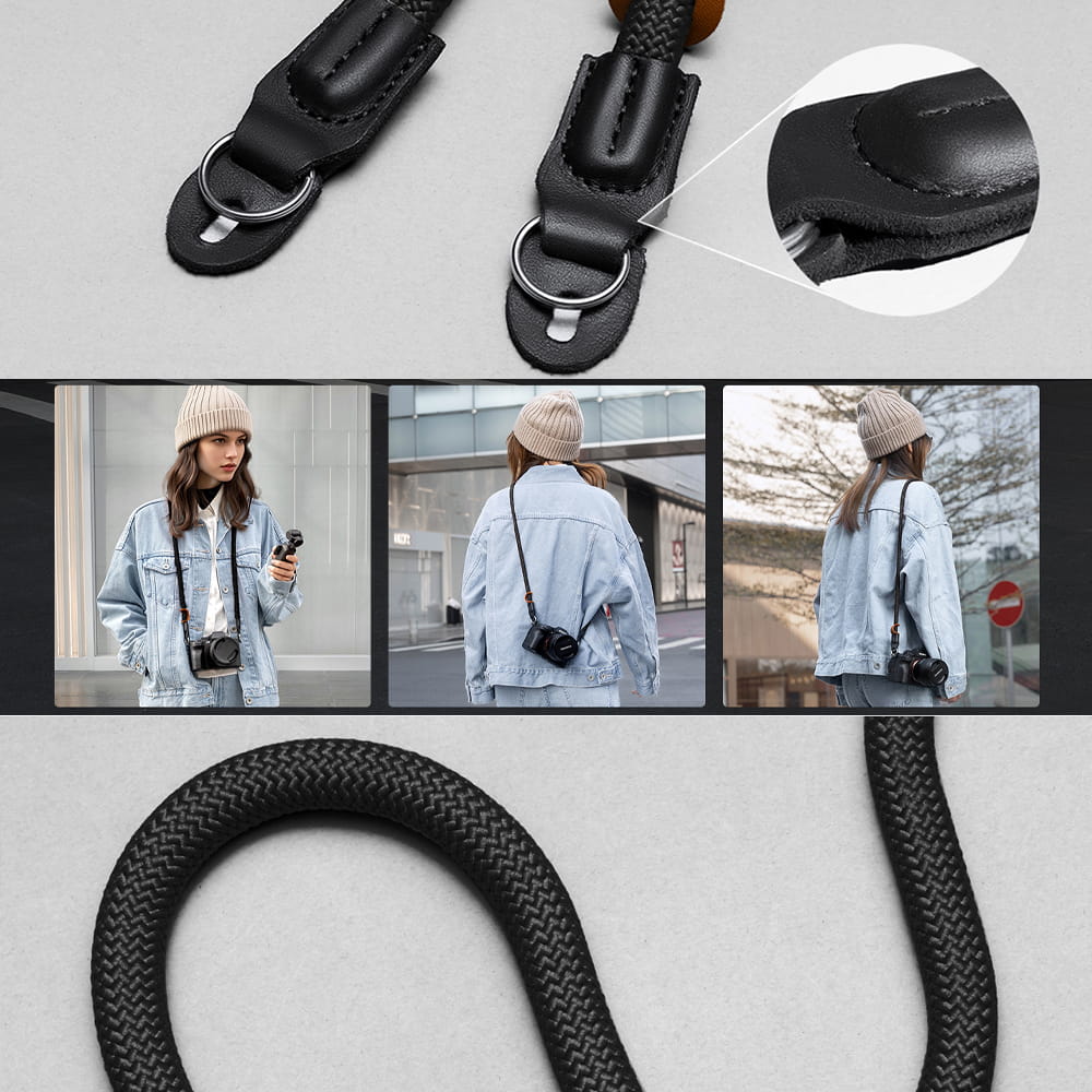 K&F Concept Urban Wander Black to pasek dla fotografów i twórców wideo, którzy potrzebują lekkiego i wygodnego rozwiązania do codziennego użytkowania aparatu. Świetnie sprawdzi się w fotografii ulicznej, podróżniczej, reportażu oraz podczas rodzinnych wyjazdów, gdy aparat przez dłuższy czas pozostaje w pogotowiu. Dzięki plecionej konstrukcji, miękkiemu nylonowi i skórzanym zakończeniom oferuje połączenie komfortu, estetyki i pewnego mocowania sprzętu.