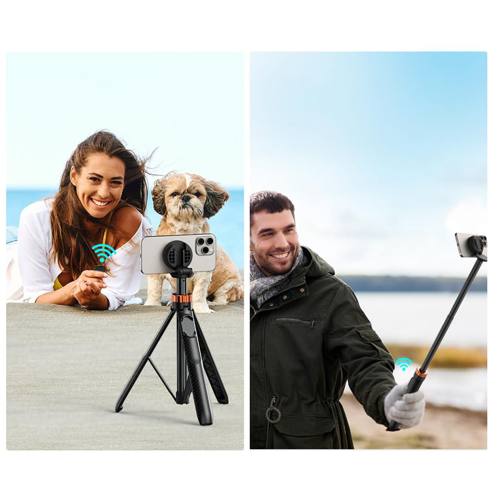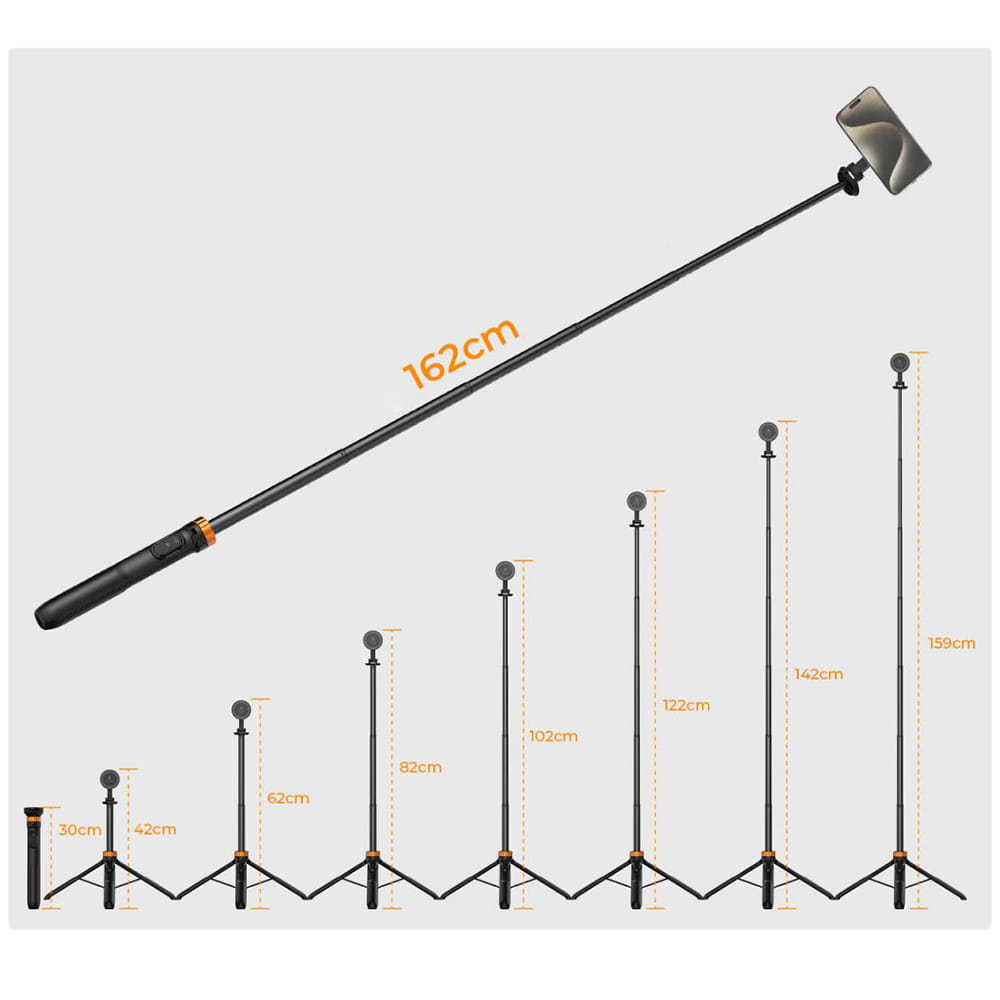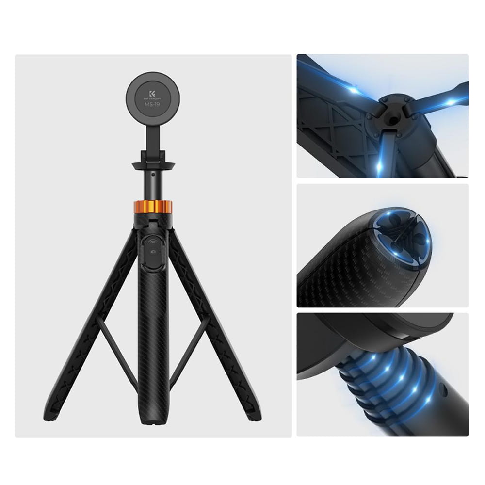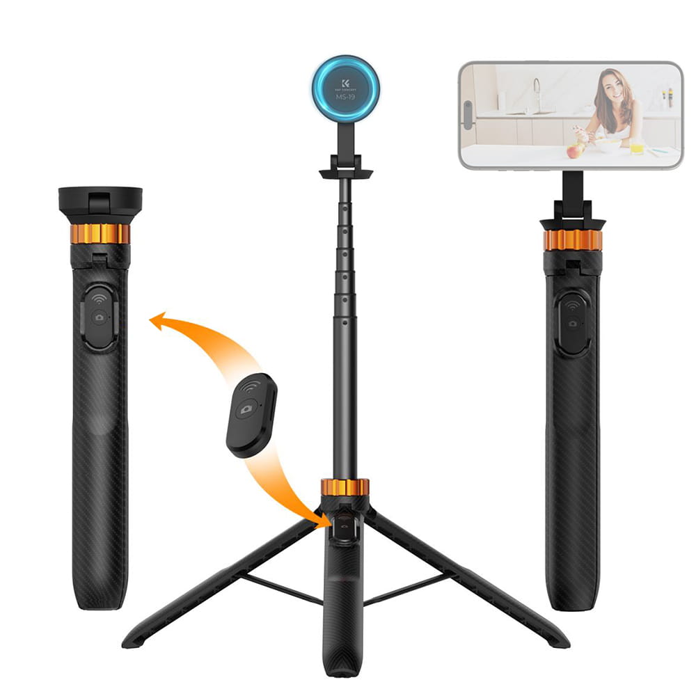 Statyw do telefonu z mocowaniem magnetycznym K&F Concept MS-19 to doskonałe akcesorium dla twórców cyfrowych, dla których głównym narzędziem pracy jest smartfon. Może pełnić funkcję tradycyjnego tripodu oraz wysięgnika selfie. Szeroka skala regulacji (159 cm jako tripod i aż 162 cm jako wysięgnik!) oraz dołączony pilot Bluetooth sprawiają, że może towarzyszyć nam w każdej sytuacji - również wtedy, gdy podczas nagrywek nie towarzysz nam druga osoba.