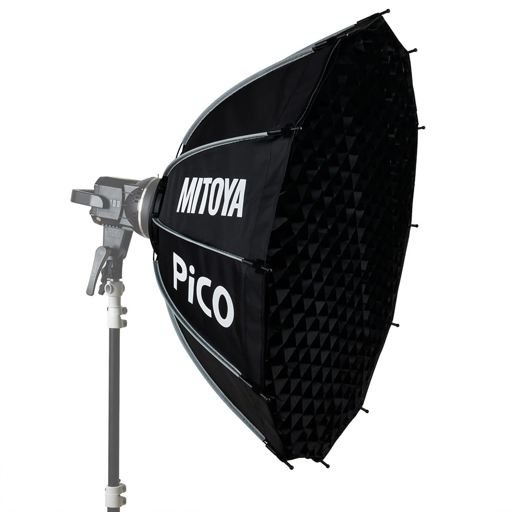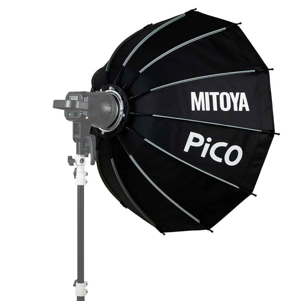 MITOYA PICO 85 cm to dwunastokątny softbox studyjny zaprojektowany z myślą o twórcach foto-video. Wyposażony w zintegrowane mocowanie BOWENS może być łączony zarówno z lampami błyskowymi, jak i lampami LED do filmowania. PICO posiada dwa dyfuzory – wewnętrzny i zewnętrzny – oraz grid z gęstą siatką oczek.